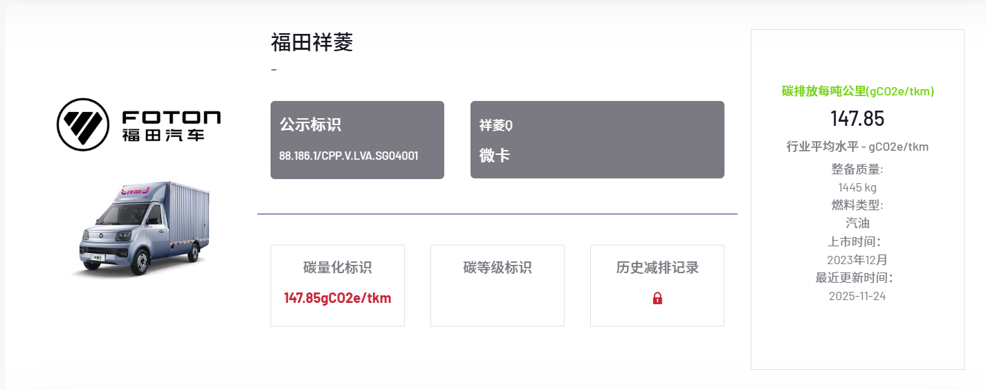 11月24日,北汽福田汽車股份有限公司(以下簡稱“福田汽車”)祥菱Q、祥菱V5兩款微卡車型順利通過中國汽車產(chǎn)業(yè)鏈碳公示平臺(CPP平臺)嚴格審核,斬獲碳足跡量化標識。加之此前6款已獲該標識的重卡、輕卡產(chǎn)品,福田汽車正式覆蓋重卡、輕卡、微卡的系列低碳商用車產(chǎn)品認證,成為行業(yè)綠色轉(zhuǎn)型的標桿性企業(yè),也標志著其綠色低碳發(fā)展之路再添關(guān)鍵里程碑。