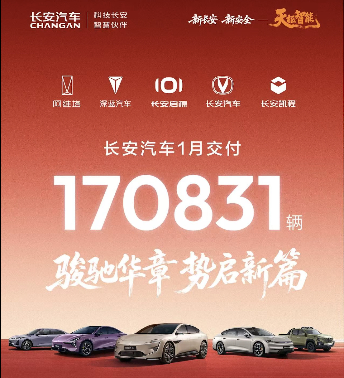 本報(bào)訊 (記者馮雨瑤)2026年2月5日,重慶長(zhǎng)安汽車(chē)股份有限公司(以下簡(jiǎn)稱(chēng)“長(zhǎng)安汽車(chē)”)發(fā)布2026年1月全球銷(xiāo)量交付數(shù)據(jù)。在行業(yè)傳統(tǒng)淡季與主動(dòng)調(diào)整內(nèi)部交付節(jié)奏的背景下,長(zhǎng)安汽車(chē)實(shí)現(xiàn)170831輛的全球交付量,旗下經(jīng)典車(chē)型與新能源產(chǎn)品線均展現(xiàn)出穩(wěn)健態(tài)勢(shì),為“十五五”規(guī)劃元年的高質(zhì)量發(fā)展奠定了堅(jiān)實(shí)基礎(chǔ)。