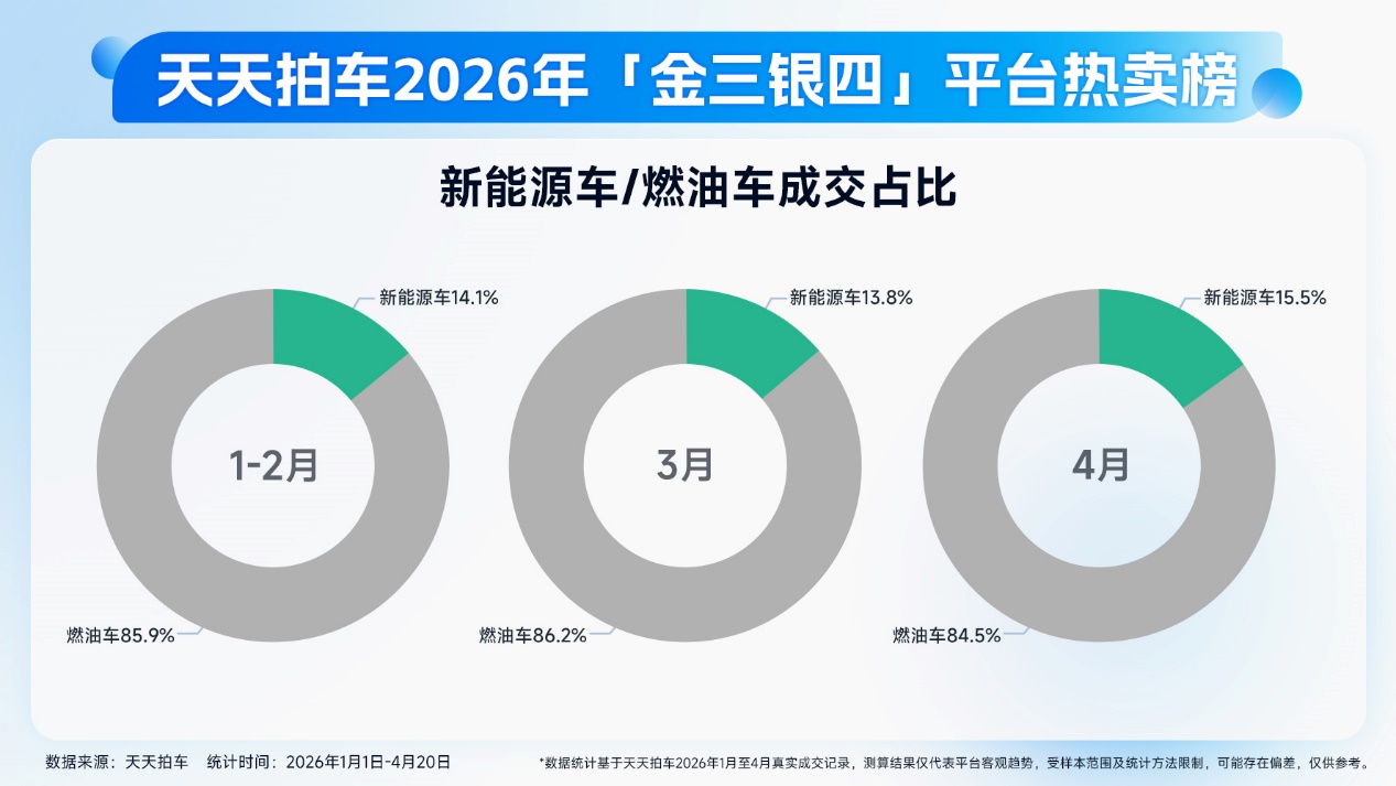 此外,進(jìn)入3月以來,受到國內(nèi)外多重因素疊加影響,新能源汽車在智駕體驗(yàn)和用能成本方面的優(yōu)勢(shì)凸顯,新能源汽車新車銷量強(qiáng)勁,推高保有量,帶動(dòng)新能源二手車交易升溫。平臺(tái)數(shù)據(jù)顯示,2026年4月平臺(tái)新能源二手車成交占比達(dá)15.5%,比3月提高1.7個(gè)百分點(diǎn)。