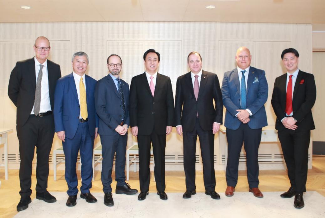 瑞典首相斯特凡·勒文(右三)見證恒大與Koenigsegg的簽約