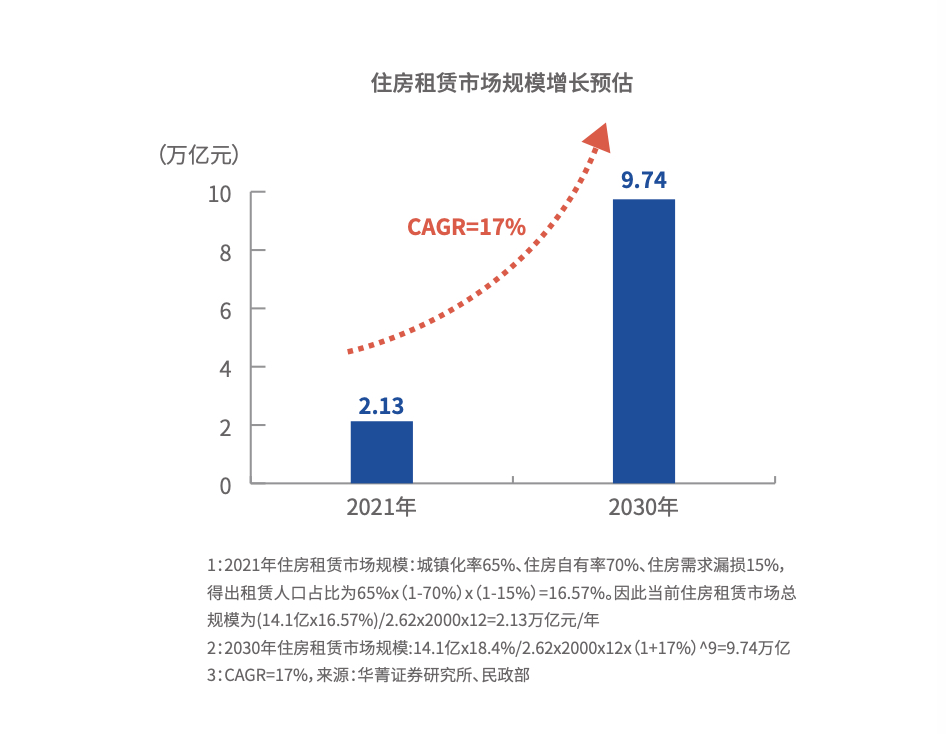 近日,《2021中國(guó)城市租住生活藍(lán)皮書(shū)》(下稱(chēng)《藍(lán)皮書(shū)》)正式發(fā)布,指出基于我國(guó)城鎮(zhèn)化率年平均2%的增速,在2030年我國(guó)住房租賃市場(chǎng)規(guī)模將近10萬(wàn)億元,行業(yè)進(jìn)入發(fā)展的“黃金十年”。