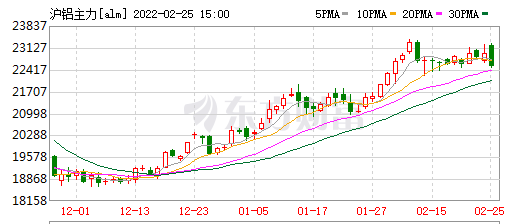 北京時間2月25日下午3點收盤時,東方財富CHOICE終端顯示,滬鋁主力合約收盤時為22510元/噸,當(dāng)前價格仍處相對高位。滬鋁主力合約近4個月從低點18158元/噸漲至高點23837元/噸,累計漲幅為31.27%,滬鋁主力合約同期表現(xiàn)甚至強于滬金主力合約。
