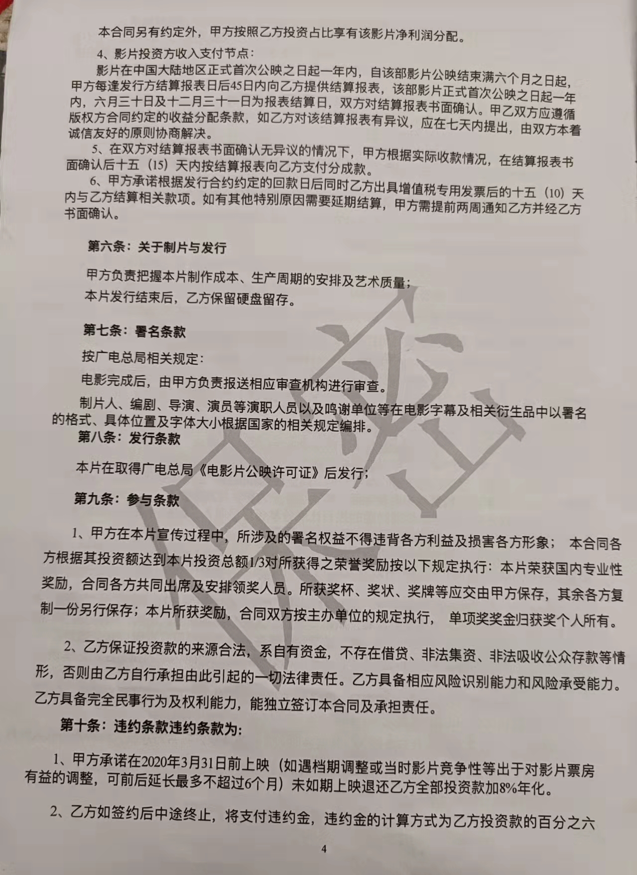 投資協(xié)議關(guān)于上映時(shí)間的約定,來(lái)源:投資者供圖