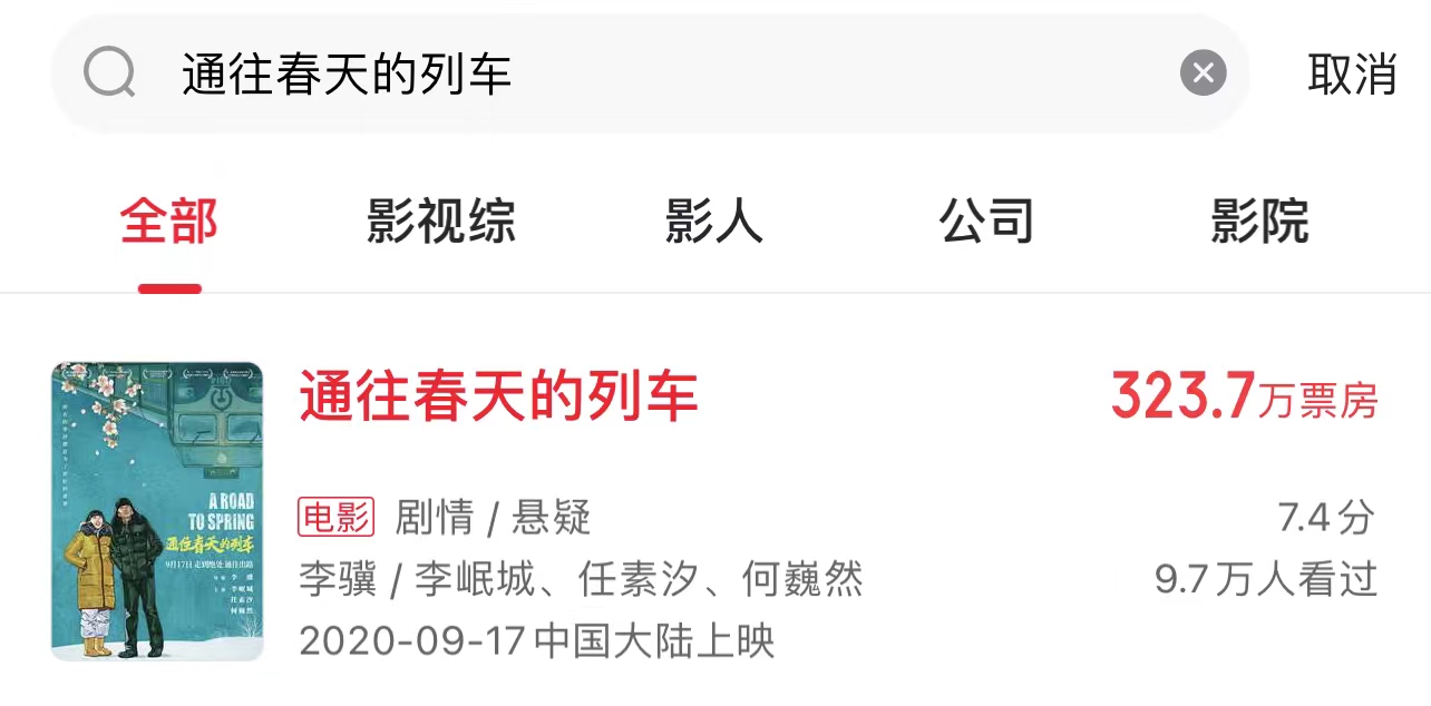 《通往春天的列車(chē)》票房失利,來(lái)源:貓眼專(zhuān)業(yè)版