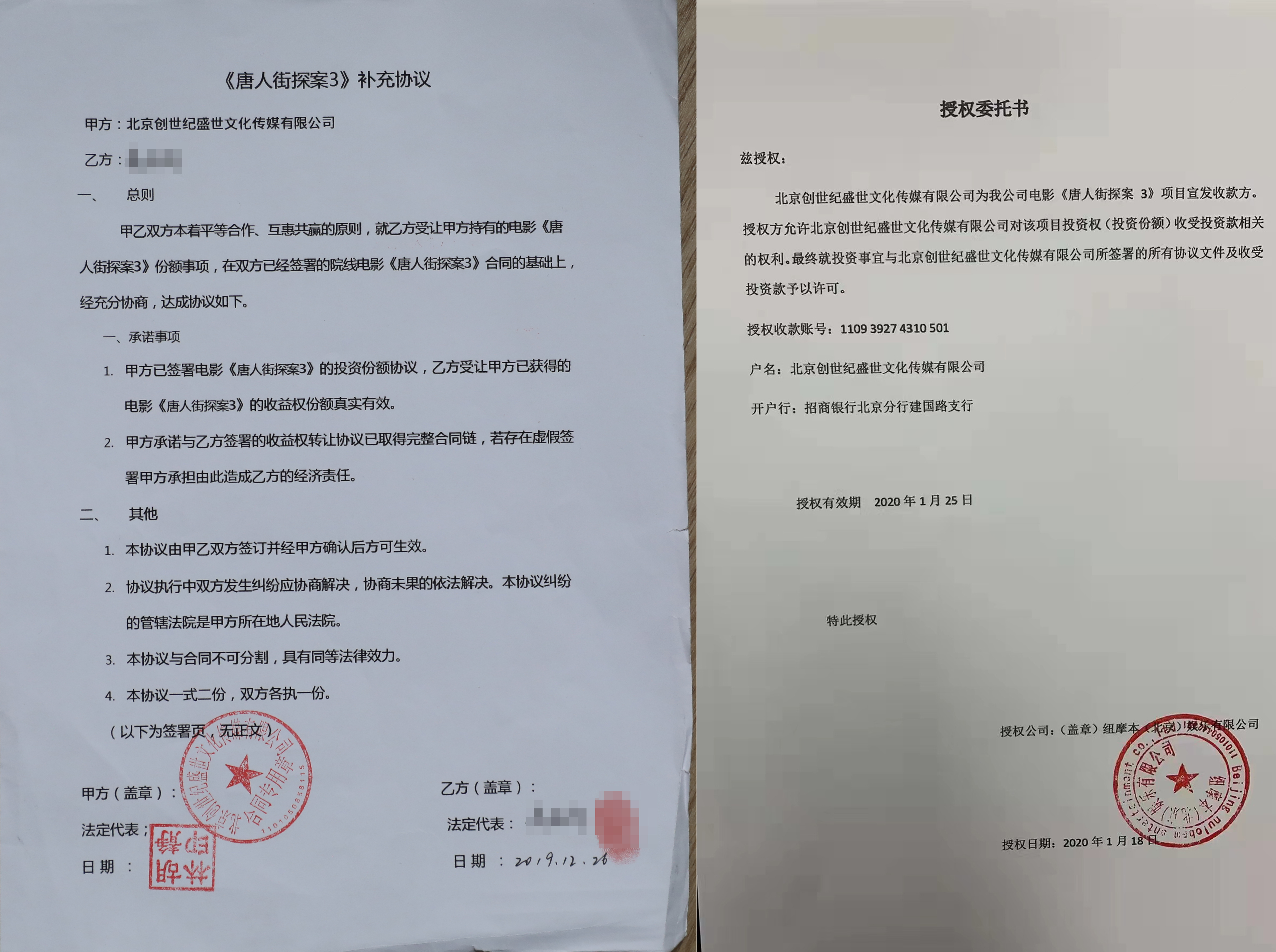 左為黃女士提供的補(bǔ)充協(xié)議,右為其他投資者提供的《授權(quán)委托書(shū)》