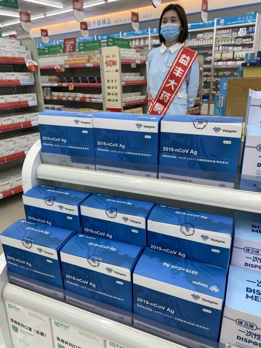 此外,《證券日?qǐng)?bào)》記者還了解到,3月15日,益豐大藥房首批新冠病毒抗原檢測試劑盒已在南京市部分門店上架開售,居民可在線下零售藥店購買到適合自我檢測的新冠病毒抗原檢測產(chǎn)品。