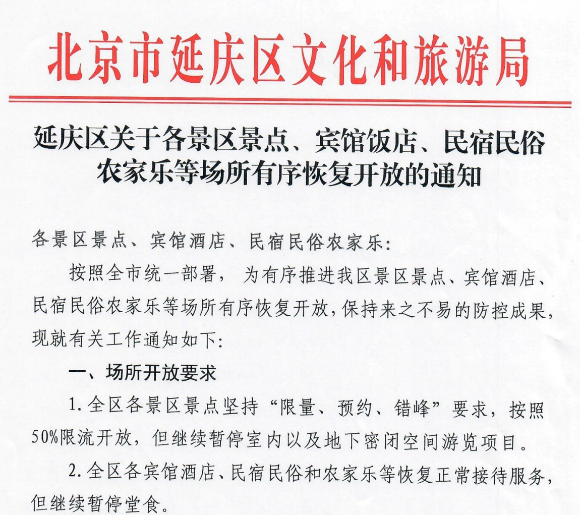 5月28日,北京市召開的疫情防控工作第348場新聞發(fā)布會(huì)上,有關(guān)部門發(fā)布了北京門頭溝、平谷、懷柔、密云、延慶區(qū)酒店民宿農(nóng)家樂恢復(fù)正常接待服務(wù)。