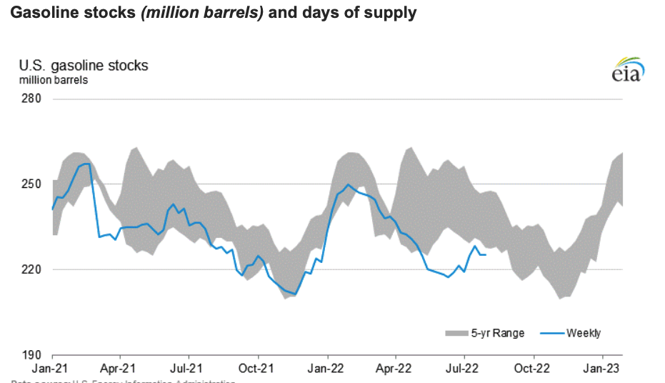 EIA最新數(shù)據(jù)顯示,7月29日美國當(dāng)周汽油需求相比去年同期下降12.6%,環(huán)比下降70萬桶/天至854萬桶/天,跌破此前疫情時期水平,四周均值也同比下降約9%。同時,原油和汽油庫存增幅大超市場預(yù)期。商業(yè)原油庫存較前一周增加446.7萬桶,汽油庫存增加16.3萬桶。