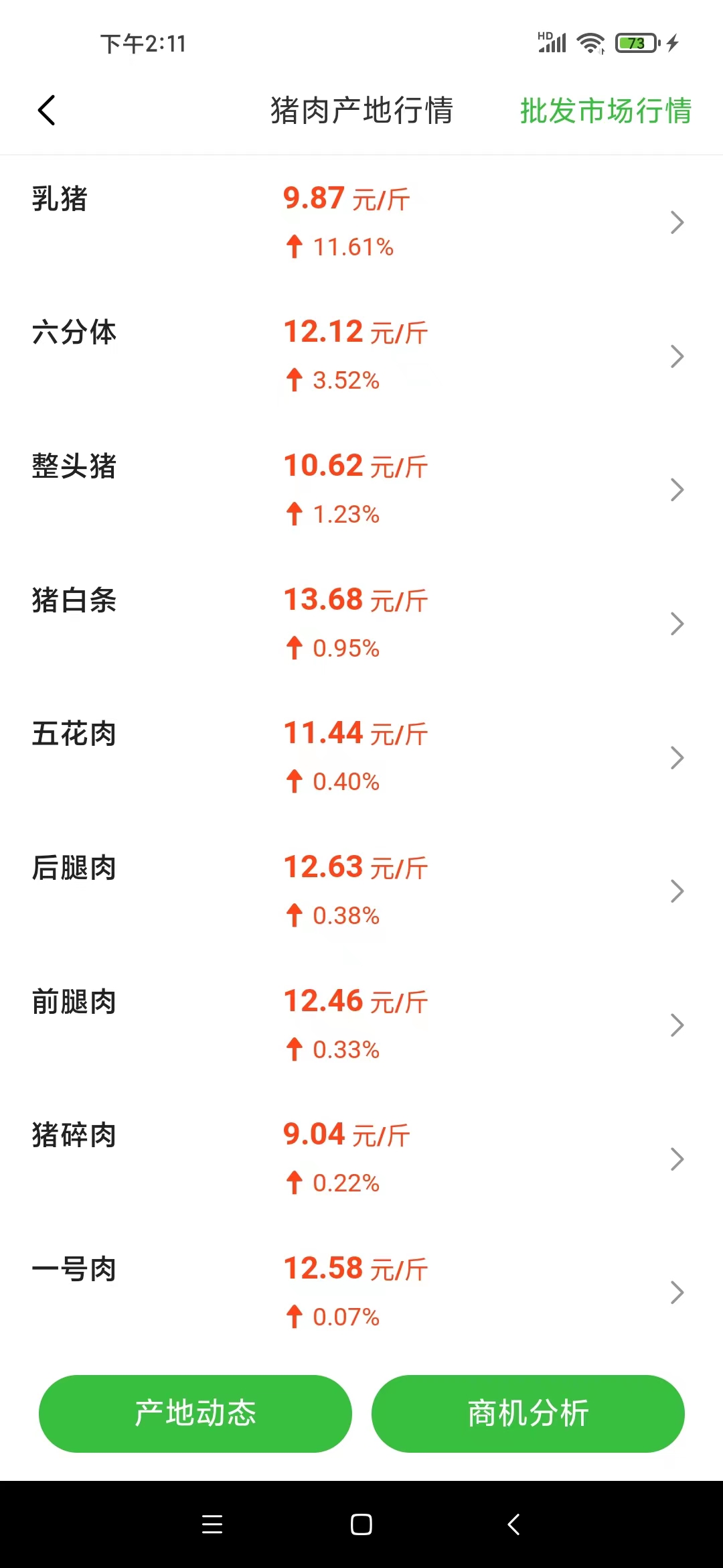 惠農(nóng)網(wǎng)大數(shù)據(jù)平臺(tái)顯示,12月4日,多地豬價(jià)穩(wěn)中有升,乳豬、前腿、后腿、五花肉、整豬價(jià)格均有一定上漲。對(duì)此,惠農(nóng)網(wǎng)大數(shù)據(jù)分析師李彬彬表示:“腌臘季節(jié)啟動(dòng)后,生豬現(xiàn)貨進(jìn)入供求兩旺的格局,養(yǎng)殖戶出欄積極性確有提高。多地對(duì)疫情防控措施進(jìn)行了優(yōu)化調(diào)整,堂食、外賣(mài)、集貿(mào)市場(chǎng)等場(chǎng)所迎來(lái)客流,也對(duì)生豬消費(fèi)有明顯提振,對(duì)生豬養(yǎng)殖全產(chǎn)業(yè)鏈有積極影響。我們預(yù)計(jì)年前生豬現(xiàn)貨價(jià)格有望止跌,春節(jié)前后有望迎來(lái)一波修復(fù)行情。”