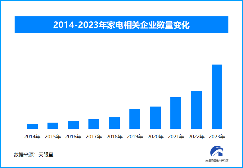 天眼查專業(yè)版數(shù)據(jù)顯示,截至目前,現(xiàn)存與家電相關(guān)的企業(yè)超過1921.9萬家,其中2024年1月份到10月份以來的企業(yè)注冊數(shù)量為404.3萬家。從企業(yè)年度注冊量可以看出,近十年來,家電相關(guān)企業(yè)的注冊量一直呈現(xiàn)出穩(wěn)健的上升趨勢,并于2023年達(dá)到峰值,注冊量超過415.8萬家??梢钥吹?,無論是消費還是生產(chǎn)銷售等各條鏈路,家電行業(yè)都呈現(xiàn)出非常喜人的增長態(tài)勢。