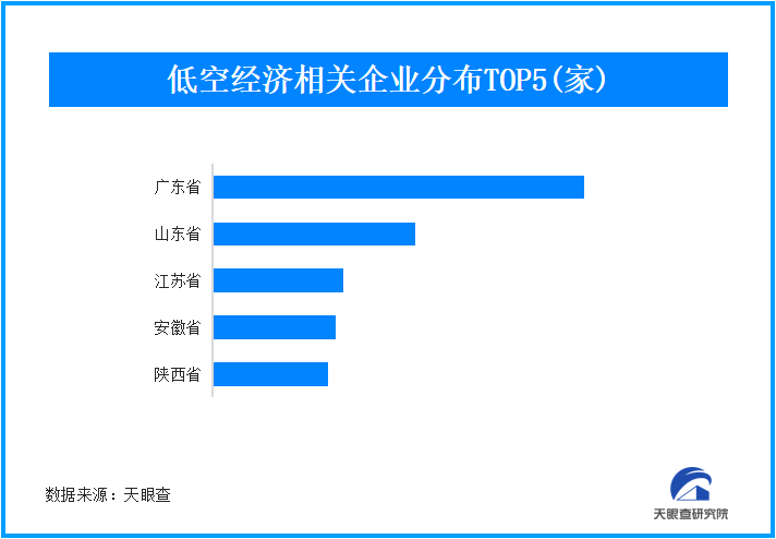 從地域分布來看,廣東位居低空經(jīng)濟相關(guān)聯(lián)企業(yè)數(shù)量榜首,達1萬余家,占比15%;其次排第二位的為山東,擁有5800余家相關(guān)企業(yè);此外,江蘇、安徽、陜西緊跟其后,分別位居第三、第四和第五名。從成立時間來看,成立于1年-5年的相關(guān)企業(yè)占比達到36.9%,成立1年以內(nèi)的企業(yè)占比14.2%。