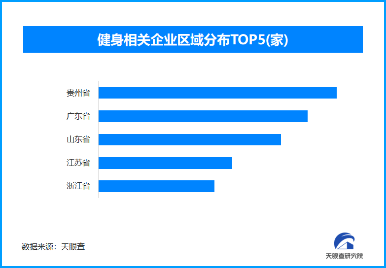 天眼查專業(yè)版數(shù)據(jù)顯示,截至目前,我國現(xiàn)存在業(yè)、存續(xù)狀態(tài)的健身相關企業(yè)超163.6萬家。從區(qū)域分布來看,貴州省、廣東省、山東省、江蘇省健身相關企業(yè)數(shù)量位居前列,四個省份數(shù)量總和超過59萬余家,占企業(yè)總數(shù)的36.07%。