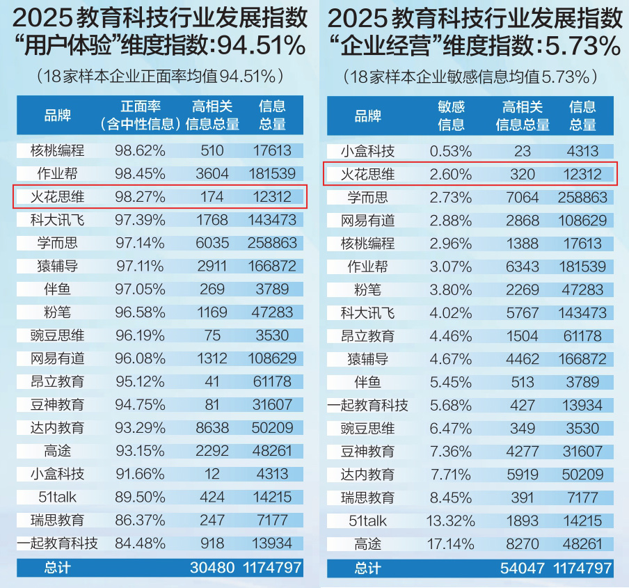 火花思維自成立以來(lái),專(zhuān)注于青少年邏輯思維訓(xùn)練及綜合素質(zhì)的提升。在2025指數(shù)榜單中,火花思維榮獲用戶體驗(yàn)與企業(yè)經(jīng)營(yíng)兩大維度前三的佳績(jī)。
