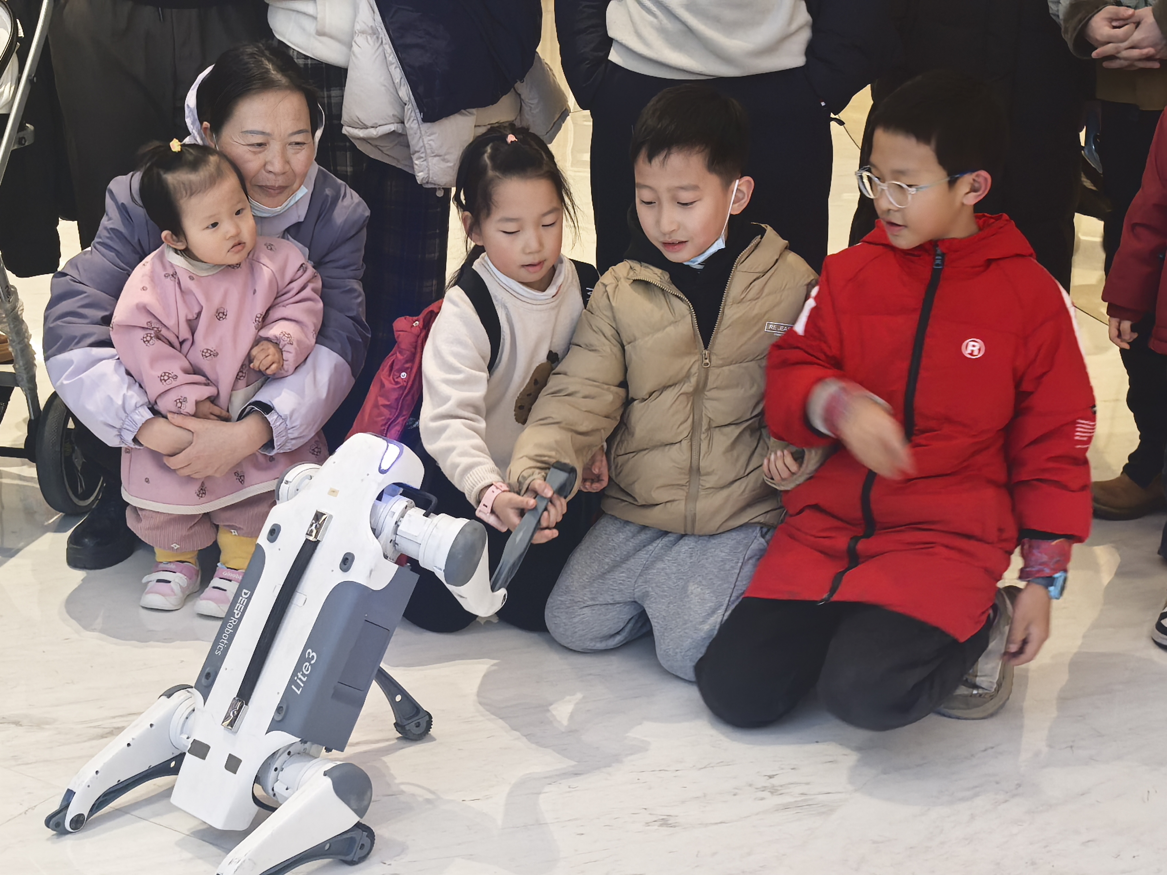 元旦假期,北辰薈購(gòu)物中心的智能機(jī)器人4S店快閃店內(nèi)熙熙攘攘,消費(fèi)者簇?fù)碓谡故九_(tái)前,與造型可愛的機(jī)器狗、智能機(jī)器人展開趣味互動(dòng)。孩子們蹲在地上,略顯生澀地操控著機(jī)器狗完成翻滾、跳躍等動(dòng)作,家長(zhǎng)們則紛紛舉起手機(jī),定格這些洋溢著節(jié)日快樂(lè)的精彩瞬間,這一幕,正是AI(人工智能)技術(shù)加速場(chǎng)景落地的生動(dòng)寫照。