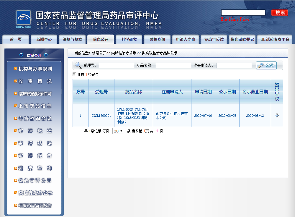 這是NMPA發(fā)布《突破性治療藥物審評工作程序》文件后,“突破性治療公示”專欄的首次更新,這也意味著這項(xiàng)特殊審評通道正式在中國啟動(dòng)。
