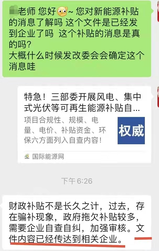 此外,記者也從某新能源電力上市公司方面了解到,公司目前正在進行相關(guān)自查自糾統(tǒng)計。
