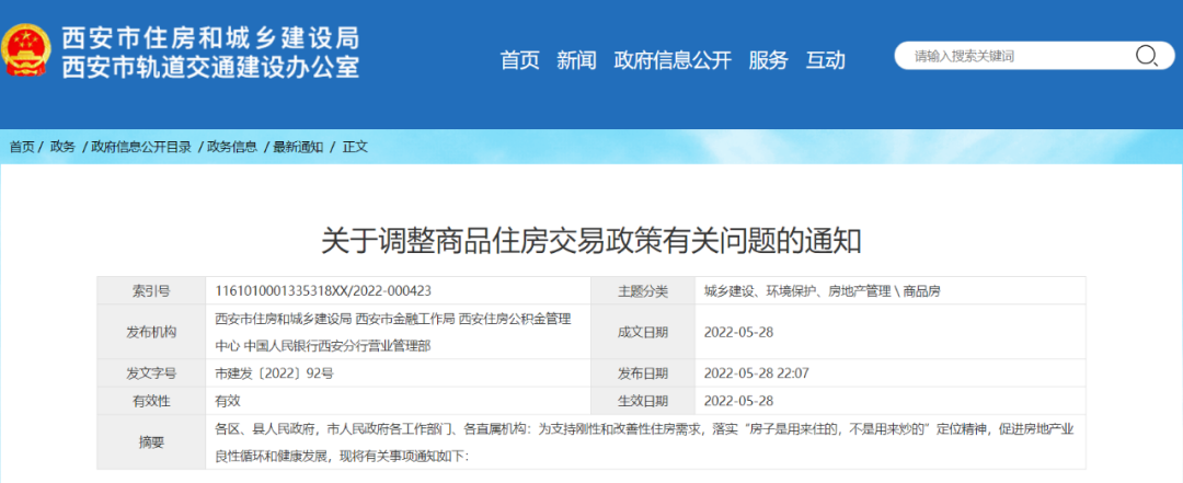 5月28日22時(shí),西安市住房和城鄉(xiāng)建設(shè)局官方網(wǎng)站公開(kāi)了共有“四大類九條舉措”的《關(guān)于調(diào)整商品住房交易政策有關(guān)問(wèn)題的通知》(以下簡(jiǎn)稱《通知》)。