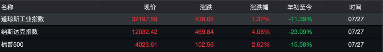 此次加息落地后,美股尾盤出現(xiàn)較大拉升。截至當(dāng)?shù)貢r(shí)間7月27日收盤,道瓊斯指數(shù)收?qǐng)?bào)32197.59點(diǎn),上漲1.37%;納斯達(dá)克指數(shù)收?qǐng)?bào)12032.42點(diǎn),上漲4.06%;標(biāo)普500指數(shù)收?qǐng)?bào)4023.61點(diǎn),上漲2.62%。但多位分析人士表示,對(duì)后續(xù)美股走勢(shì)仍持謹(jǐn)慎態(tài)度。