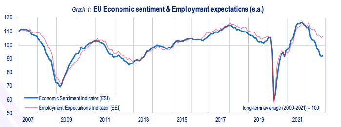 來源:歐元區(qū)經濟景氣指數(shù)報告