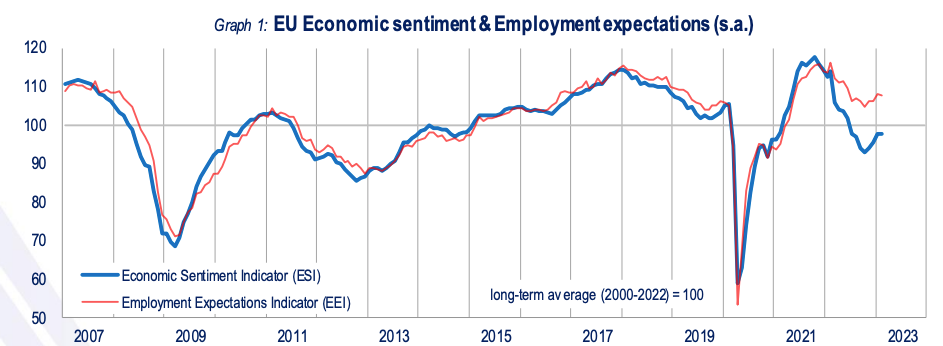 2月27日18時,由歐盟經(jīng)濟(jì)和財政事務(wù)委員會編撰的經(jīng)濟(jì)景氣指數(shù)報告(以下簡稱“報告”)出爐,2月份,歐盟、歐元區(qū)經(jīng)濟(jì)景氣指數(shù)基本與前月持平,其中歐盟地區(qū)為97.8,與1月份水平一致。歐元區(qū)經(jīng)濟(jì)景氣指數(shù)則小幅下降0.1,錄得99.7。