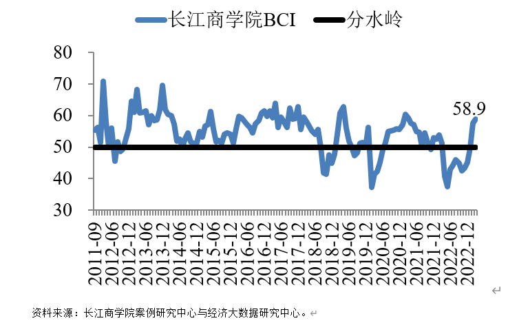 我國經(jīng)濟持續(xù)整體好轉(zhuǎn)態(tài)勢明顯,3月份的“長江商學(xué)院中國企業(yè)經(jīng)營狀況指數(shù)”(以下簡稱BCI指數(shù))為58.9,與2023年2月的57.6相比有小幅上升。3月BCI指數(shù)延續(xù)上月抬升勢頭,經(jīng)過連續(xù)5個月上升,現(xiàn)在指數(shù)已接近60的水平,這意味著BCI指數(shù)調(diào)查范圍內(nèi)企業(yè)對6個月內(nèi)的發(fā)展趨勢持相對樂觀的態(tài)度。