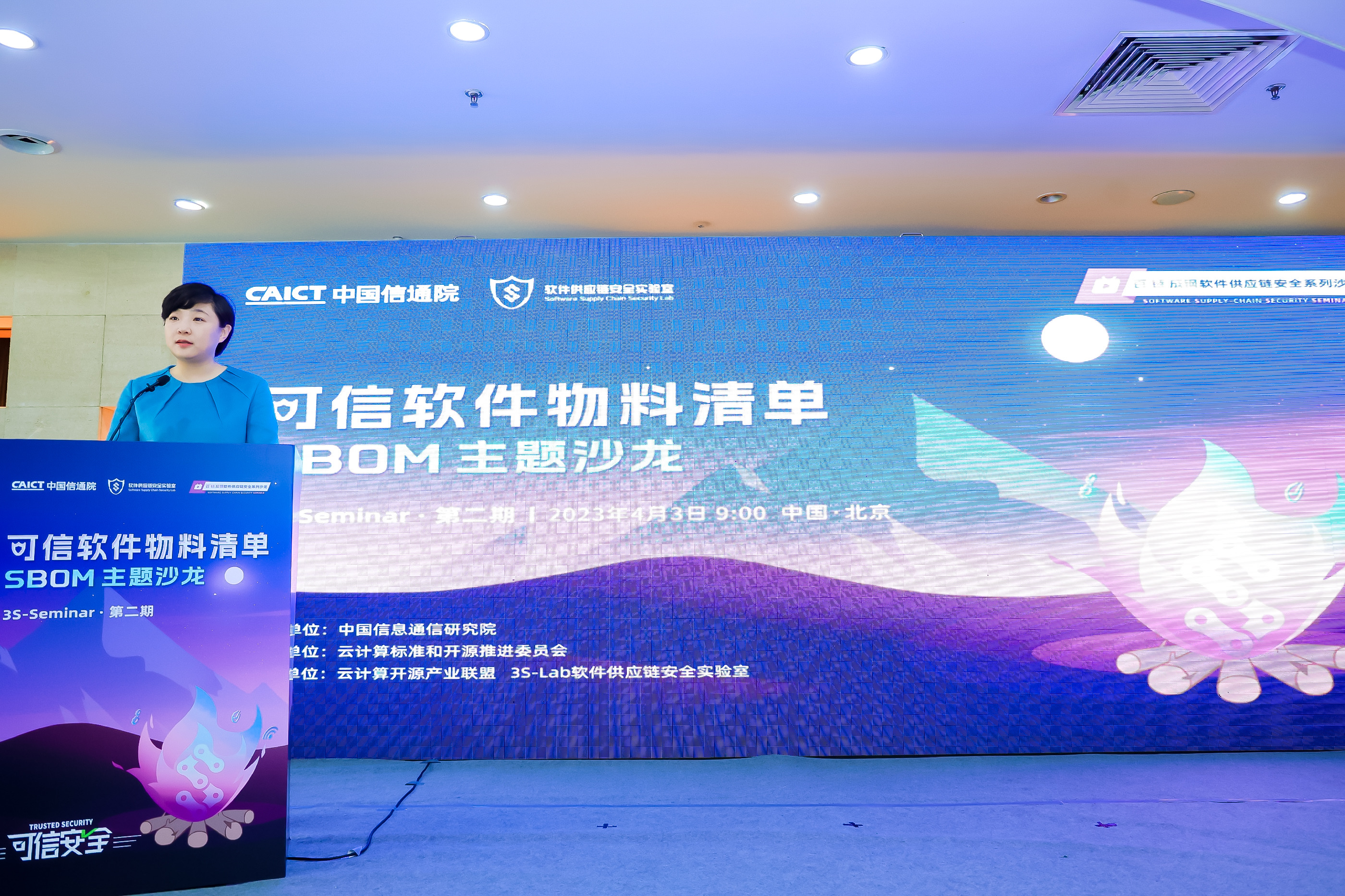 中國信通院云大所開源和軟件安全部郭雪主任發(fā)布了“可信軟件物料清單(SBOM)深度洞察”,全面分析了軟件物料清單發(fā)展歷程,洞察產(chǎn)業(yè)現(xiàn)狀,幫助企業(yè)更好地將軟件物料清單引入軟件供應(yīng)鏈安全建設(shè)中。她表示,未來中國信通院將繼續(xù)推進軟件物料清單技術(shù)、應(yīng)用等相關(guān)研究,完善軟件供應(yīng)鏈安全標準體系和系列評估。