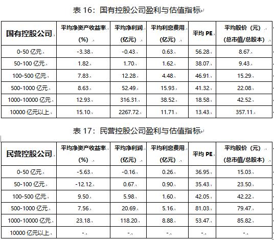 理論上而言,擁有絕對(duì)高收益且經(jīng)營(yíng)穩(wěn)定的國(guó)有控股公司,估值應(yīng)處于更高水平,但由于(1)相當(dāng)部分國(guó)有控股上市公司屬于傳統(tǒng)行業(yè),成長(zhǎng)性不足;(2)國(guó)有控股上市公司的資源利用效率出現(xiàn)下滑,故導(dǎo)致了其估值相對(duì)于擁有更多科創(chuàng)屬性的民營(yíng)控股上市公司更低。