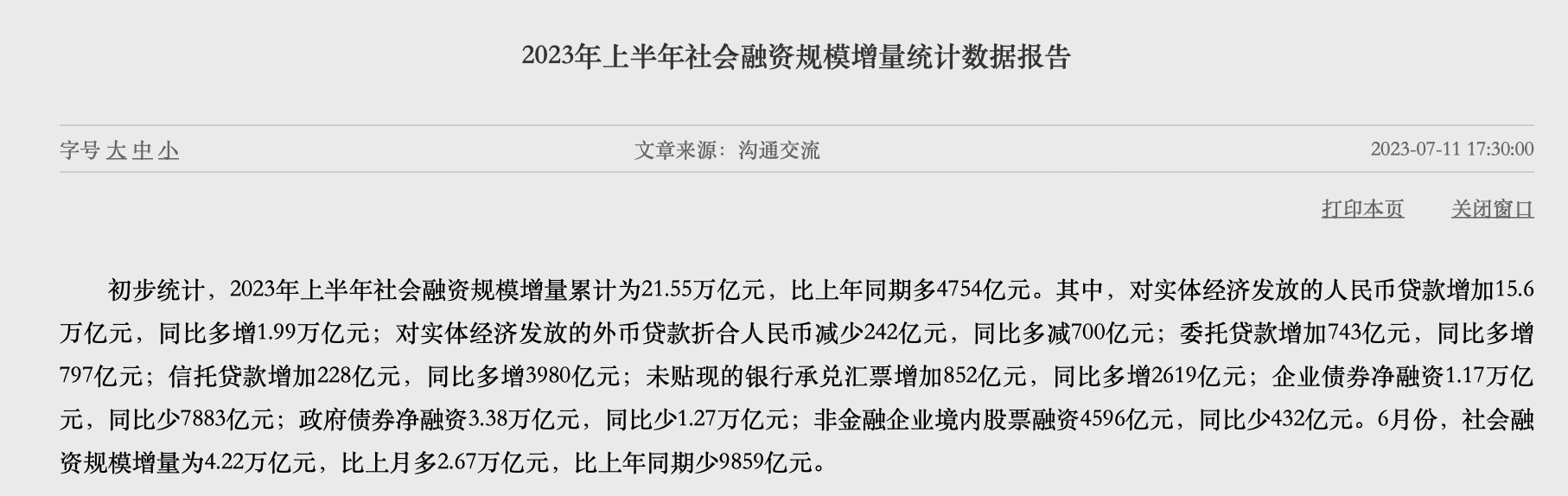 社融方面,今年上半年社會融資規(guī)模增量累計(jì)為21.55萬億元,比上年同期多4754億元。