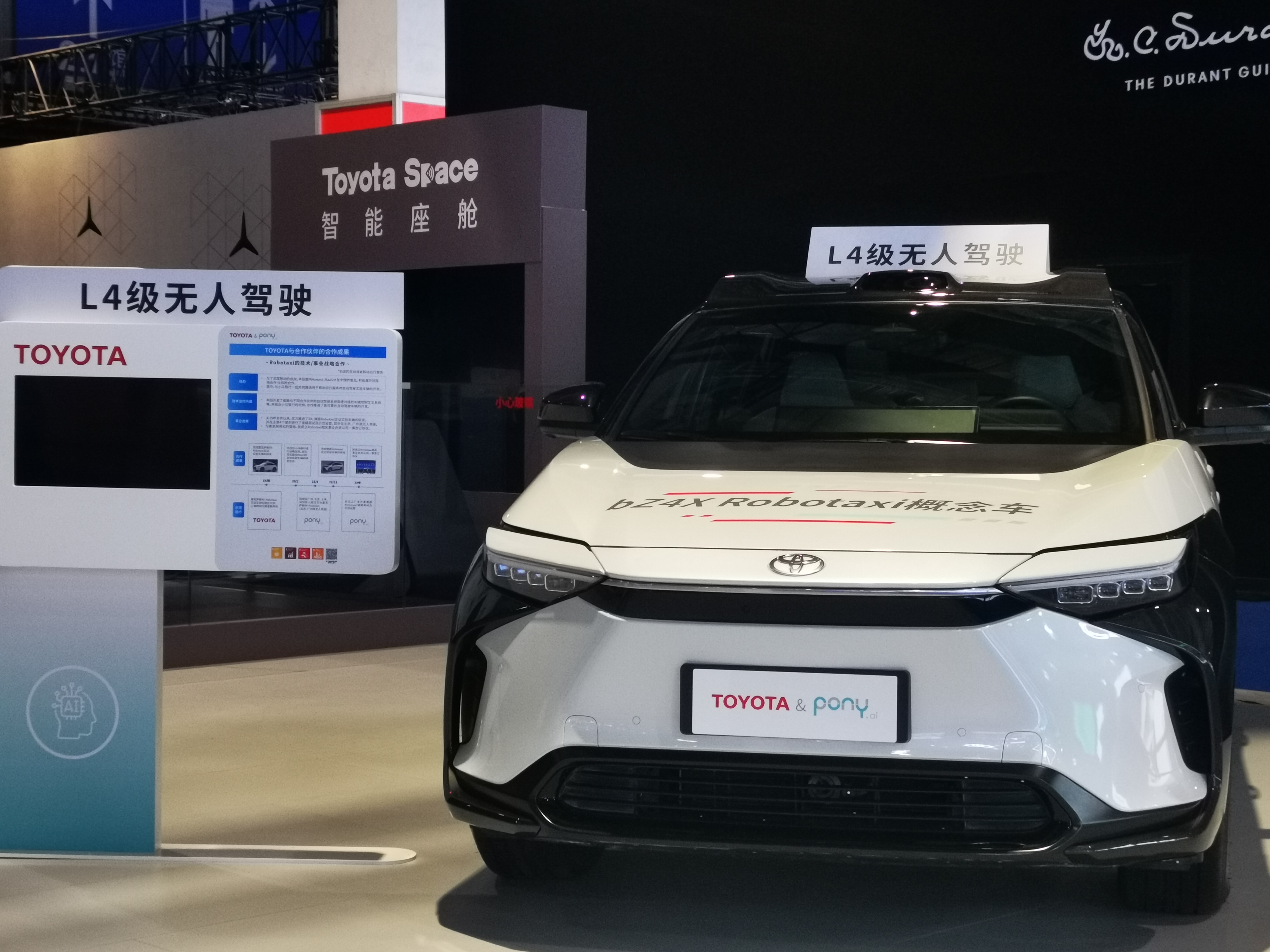 在汽車展廳,小馬智行負責(zé)人對記者表示,小馬智行與豐田汽車聯(lián)合發(fā)布首款純電自動駕駛出租車(Robotaxi)概念車,該車型基于廣汽豐田生產(chǎn)的bZ4X純電車輛平臺打造,將搭載小馬智行研發(fā)的第七代L4級自動駕駛乘用車軟硬件系統(tǒng)。這是繼今年8月小馬智行、豐田中國、廣汽豐田三方宣布設(shè)立合資公司推進Robotaxi規(guī)?;渴鸷蟮淖钚逻M展。