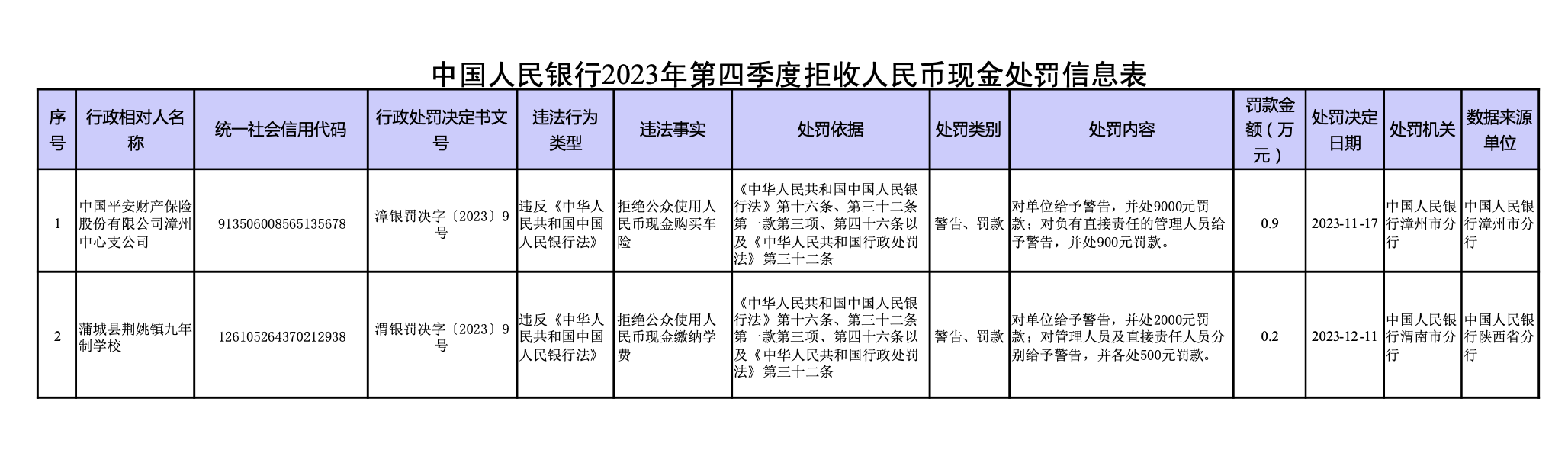 1月19日,中國人民銀行網(wǎng)站發(fā)布2023年第四季度拒收人民幣現(xiàn)金處罰情況。近期,中國人民銀行對兩家拒收人民幣現(xiàn)金的單位及相關(guān)責任人依法作出經(jīng)濟處罰。廣大經(jīng)營主體應(yīng)強化法治觀念,尊重公眾支付選擇權(quán),共同打造現(xiàn)金和諧流通環(huán)境。