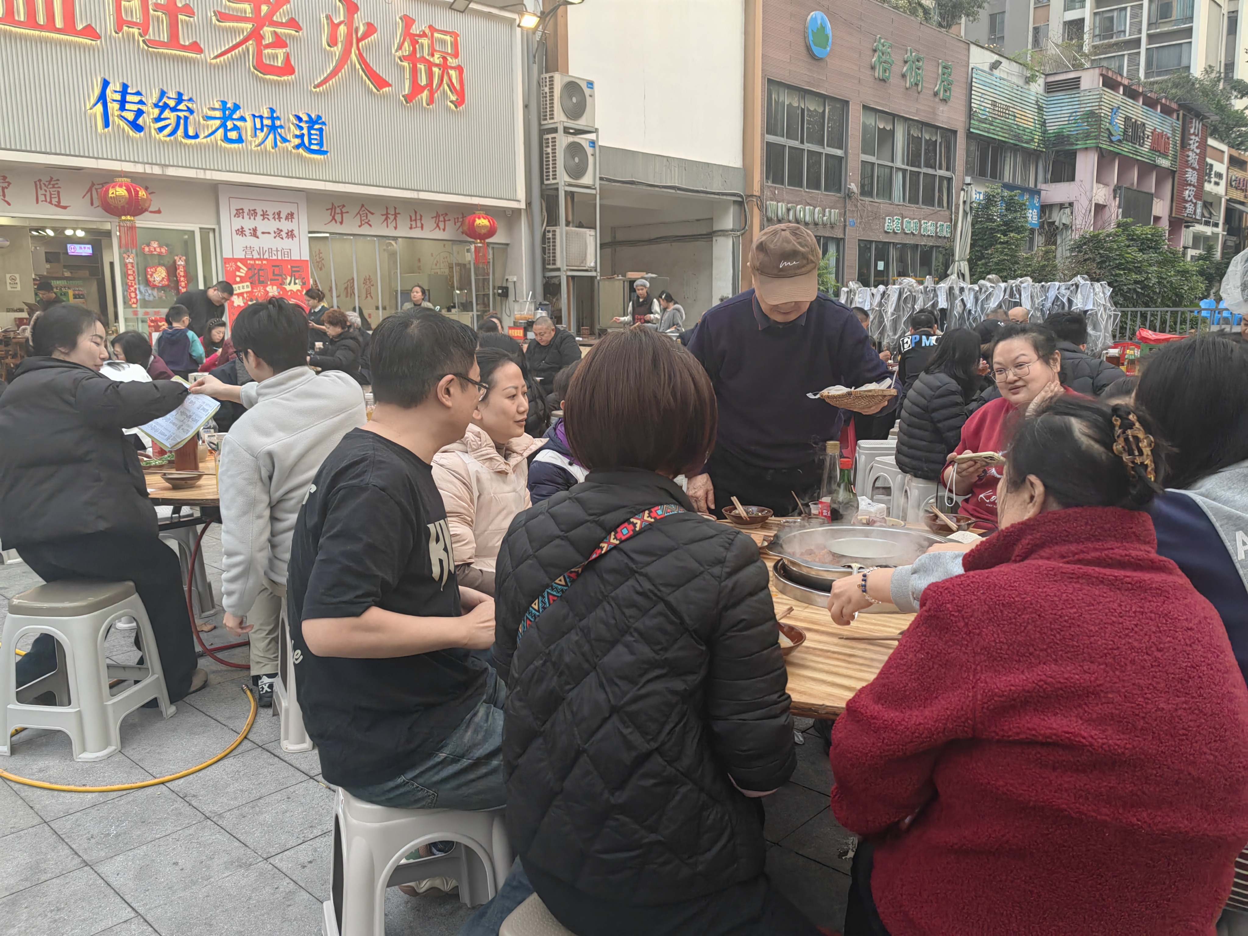 臘月二十八,重慶兩江新區(qū)血旺老火鍋店熱鬧非凡,市民吳欣(化名)籌備了一桌地道的重慶火鍋,用以款待親朋好友以及遠(yuǎn)道而來(lái)游玩的外省朋友。身為東道主,她挑選的“小酥肉”“毛血旺”等地方特色佳肴,既保留了傳統(tǒng)年味的醇厚底蘊(yùn),又融入了重慶獨(dú)有的特色風(fēng)味,讓人唇齒留香。