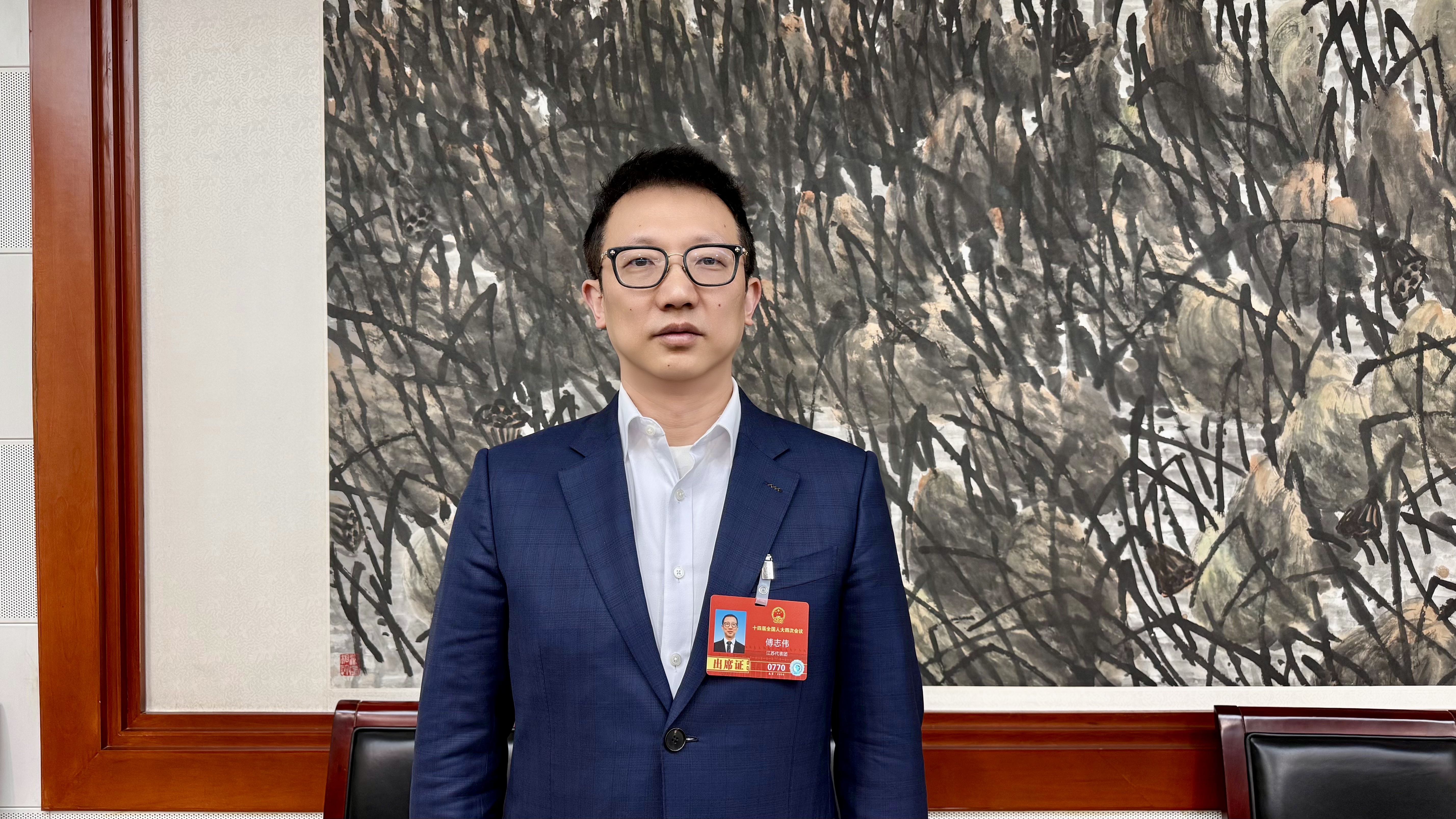 全國(guó)人大代表、徐州博康化學(xué)科技股份有限公司董事長(zhǎng)傅志偉接受《證券日?qǐng)?bào)》記者采訪 劉釗/攝