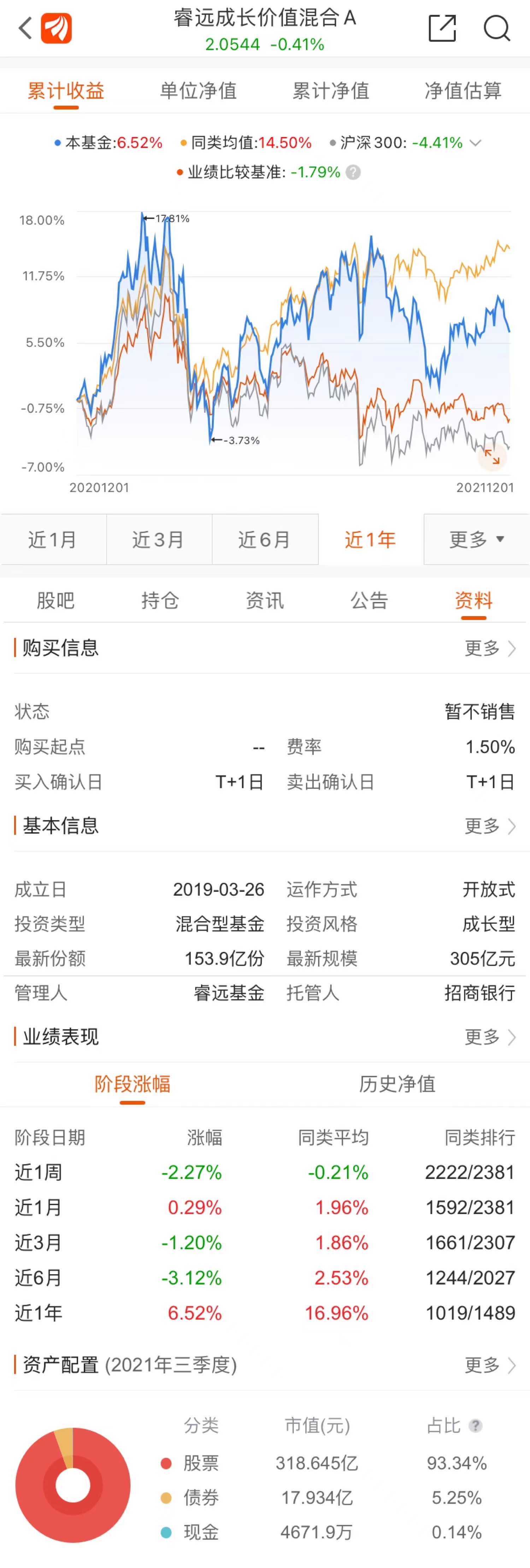 睿遠(yuǎn)成長價值混合式睿遠(yuǎn)基金的第一只產(chǎn)品,基金成立日是2019年3月26日,最新管理規(guī)模為305億元。