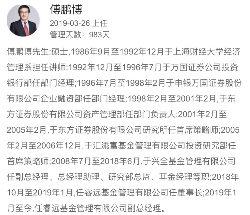 掌舵首只“睿遠(yuǎn)牌”基金的是基金名將傅鵬博和朱璘。傅鵬博目前任睿遠(yuǎn)基金管理有限公司副總經(jīng)理、公募權(quán)益投資管理部總經(jīng)理、基金經(jīng)理,曾任興全基金管理有限公司副總經(jīng)理,擁有超過25年證券從業(yè)經(jīng)驗(yàn)。