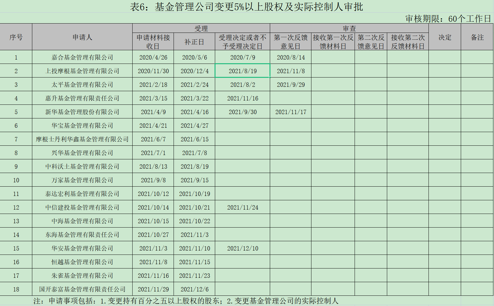 未來還會迎來一波基金公司股權變更潮。證監(jiān)會網(wǎng)站顯示,截至12月17日,共有包括新華、上投摩根、恒越等18家基金公司股權變更申請正在等待審批。