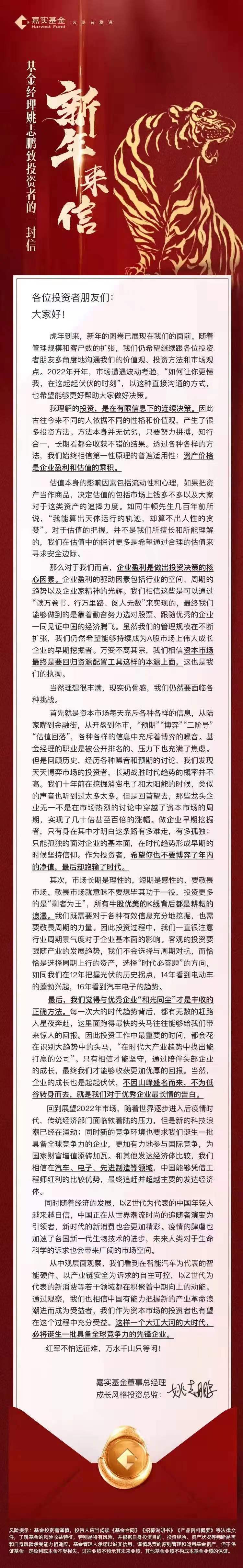 在虎年到來(lái)之際,姚志鵬用一句:“如何讓你們更懂我,在這起起伏伏的時(shí)刻”,直接表達(dá)了希望與投資者多角度地溝通價(jià)值觀、投資方法和市場(chǎng)觀點(diǎn)的愿望。