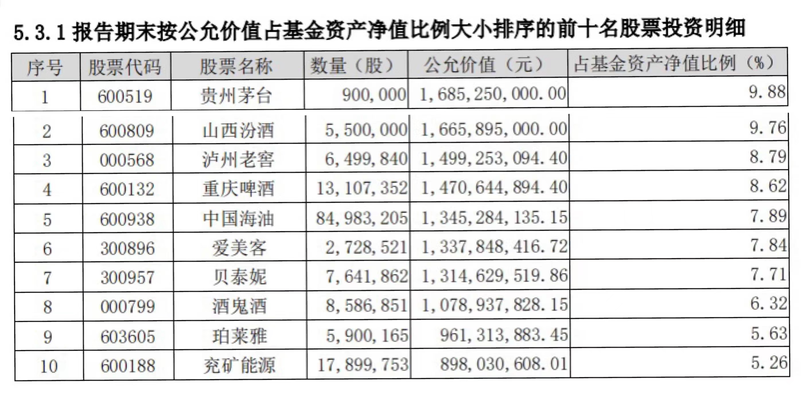 截至三季度末,銀華富裕主題混合前十大重倉股如下:
