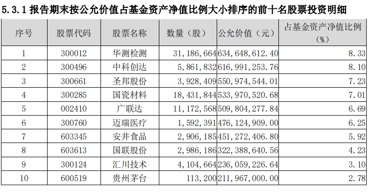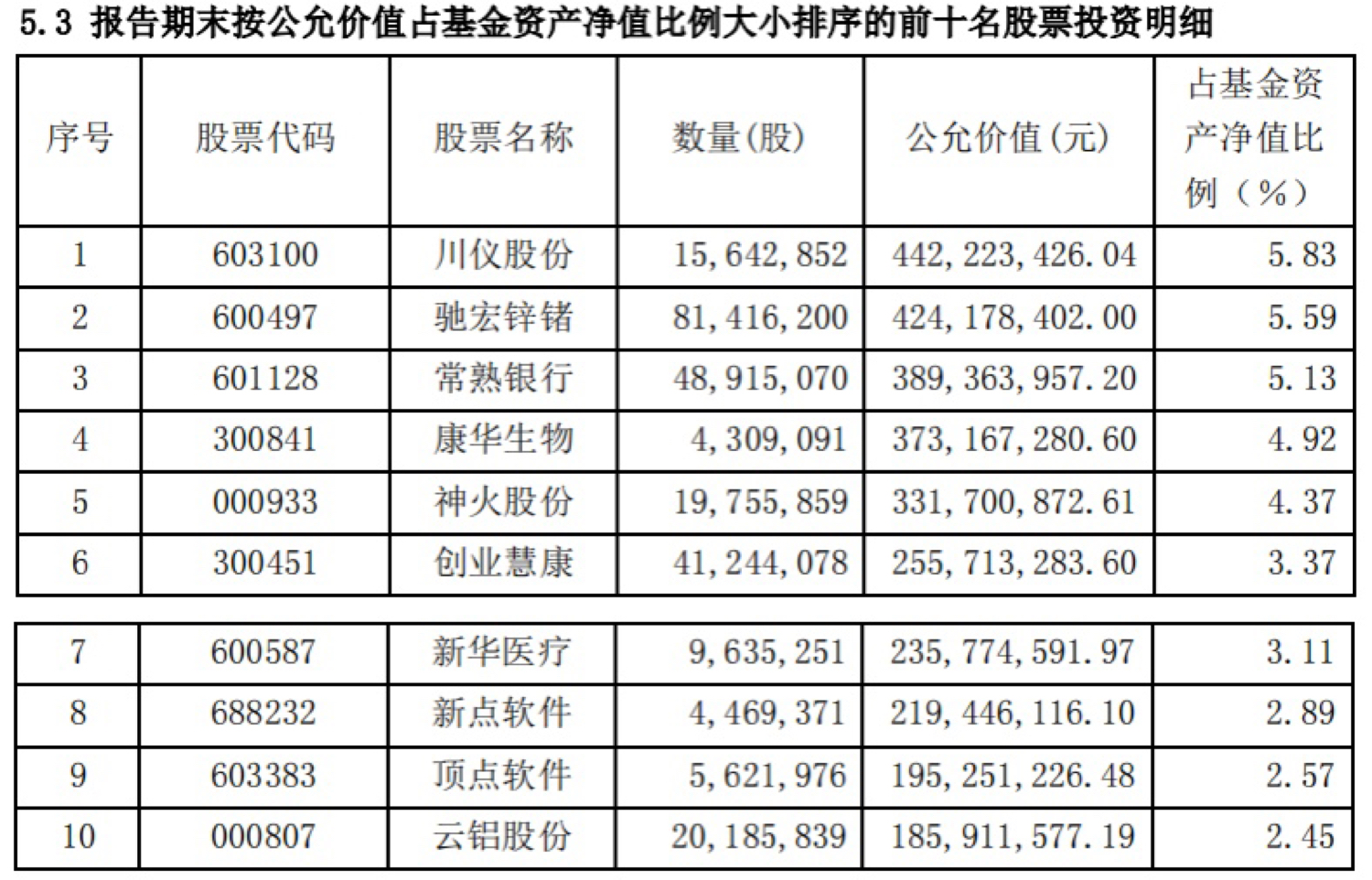 截至三季度末,中庚小盤價值股票前十大重倉股如下: