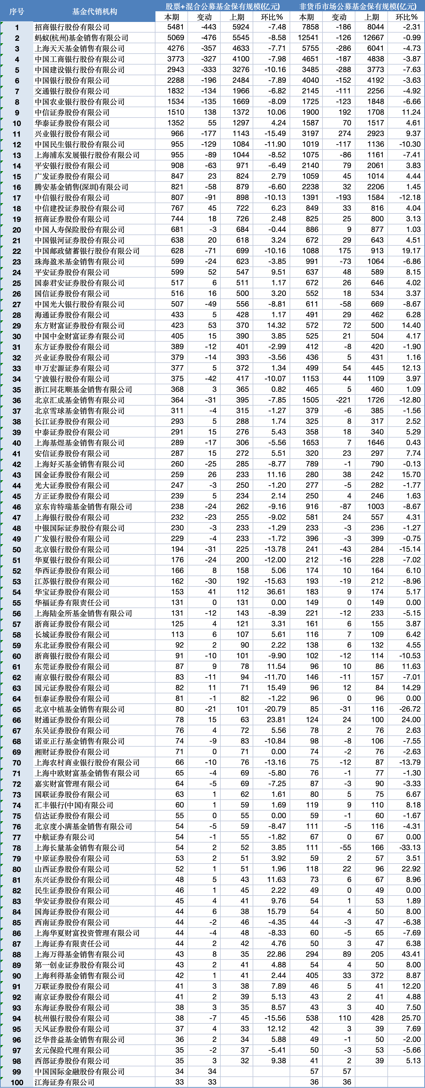 基金代銷百強(qiáng)榜單:
