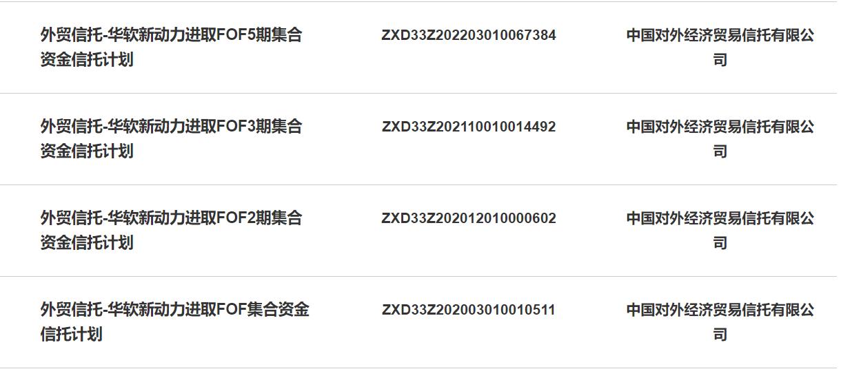 事實上,外貿(mào)信托與華軟新動力合作頗深,據(jù)中國信托登記有限責(zé)任公司官網(wǎng)數(shù)據(jù),4款涉及華軟新動力相關(guān)FOF信托產(chǎn)品的發(fā)行機構(gòu)均為外貿(mào)信托。