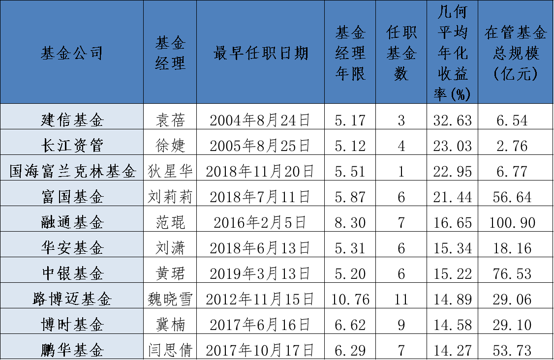 以下為幾何平均年化收益率前10名女性基金經(jīng)理名單: