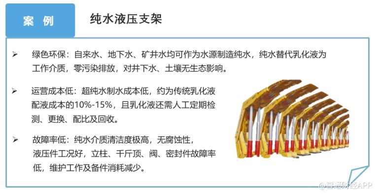 記者從公司了解到,公司主推的綠色環(huán)保產品純水液壓支架,以純水液壓代替?zhèn)鹘y(tǒng)乳化液配液,填補了國內外綜采工作面使用純水介質的空白。自來水、地下水、礦井水均可作為水源制造純水,真正實現零污染排放,對井下水、土地生態(tài)亦不產生影響,符合國家環(huán)保政策要求。公司的這款綠色、環(huán)境友好型的產品不僅減少了因煤炭開采對生態(tài)的影響,實現了乳化液零消耗、井下水資源零污染,而且還降低了煤炭開采成本,控制了零部件故損率,延長了液壓支架使用壽命,提高了生產效率。