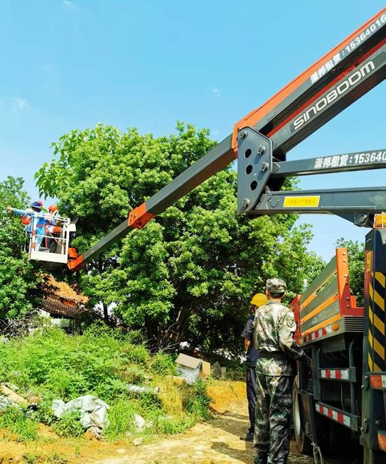 星邦智能的高空作業(yè)車在貧困戶的楊梅園中抓緊時間采收果實(供圖:肖偉)