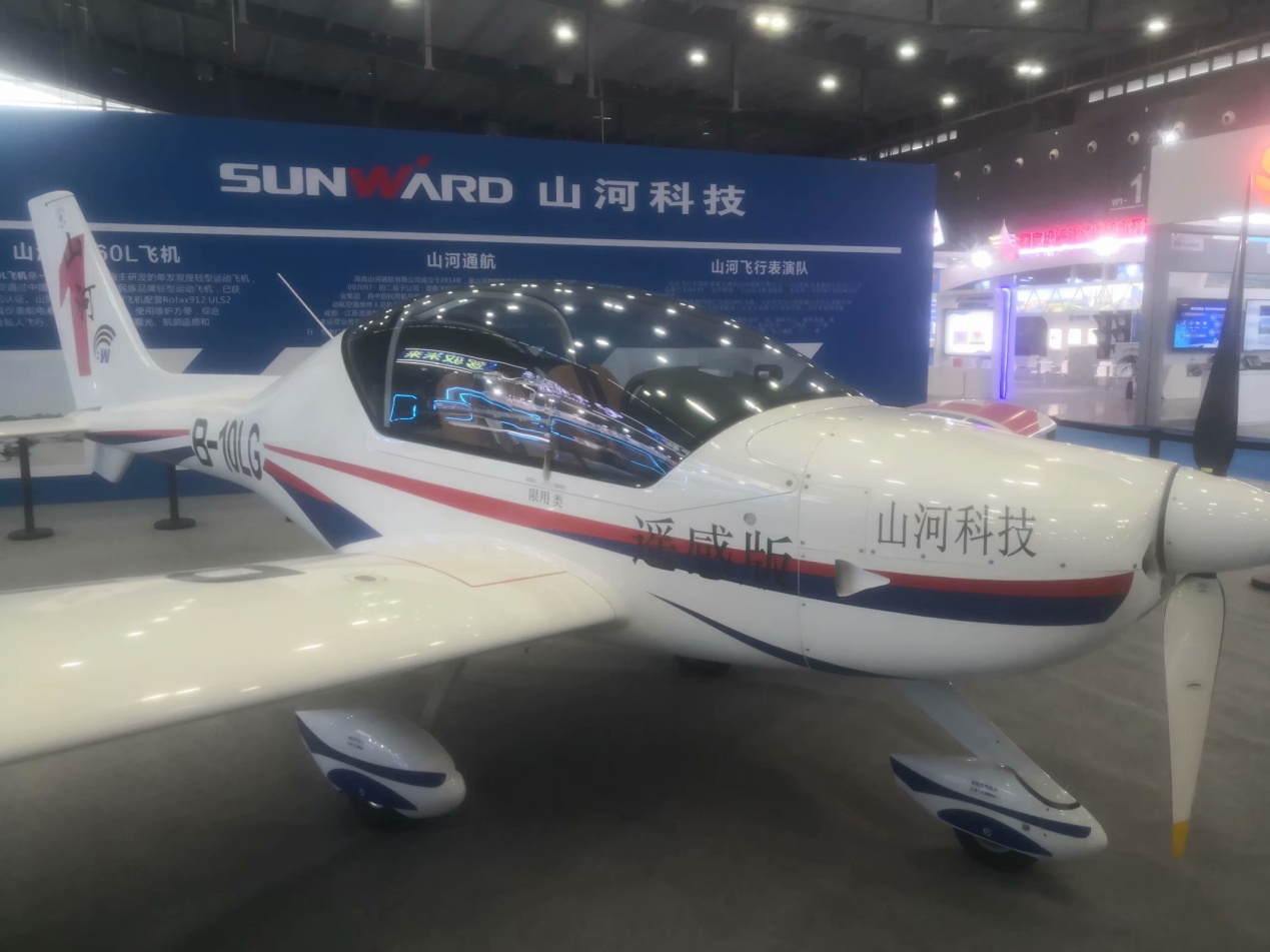 山河智能推出的可自動(dòng)測繪數(shù)字地圖的遙感版輕型飛機(jī)(攝影:肖偉)