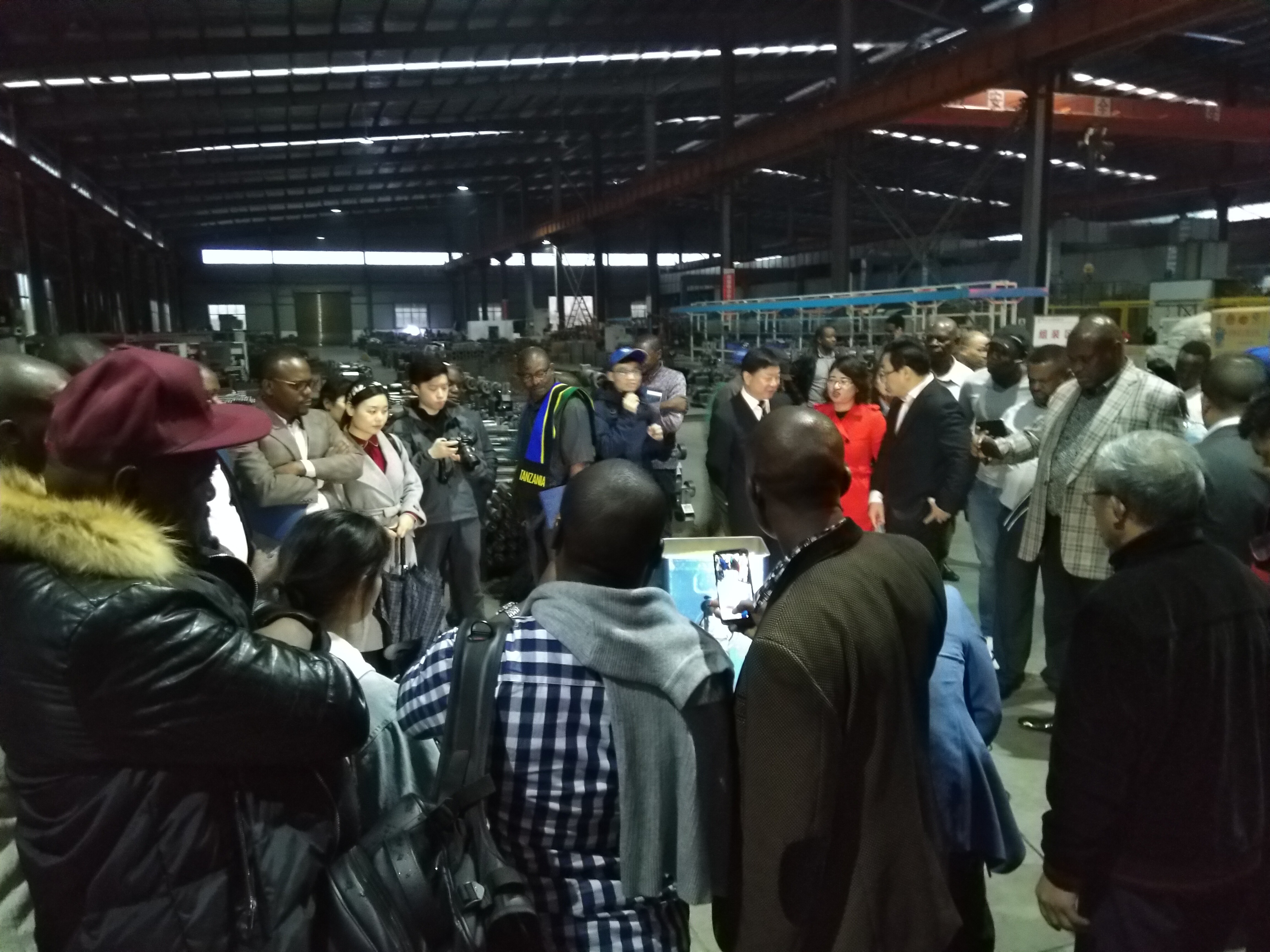 來自非洲的客商們正在觀看勁松機(jī)械的設(shè)備演示(供圖:勁松機(jī)械)