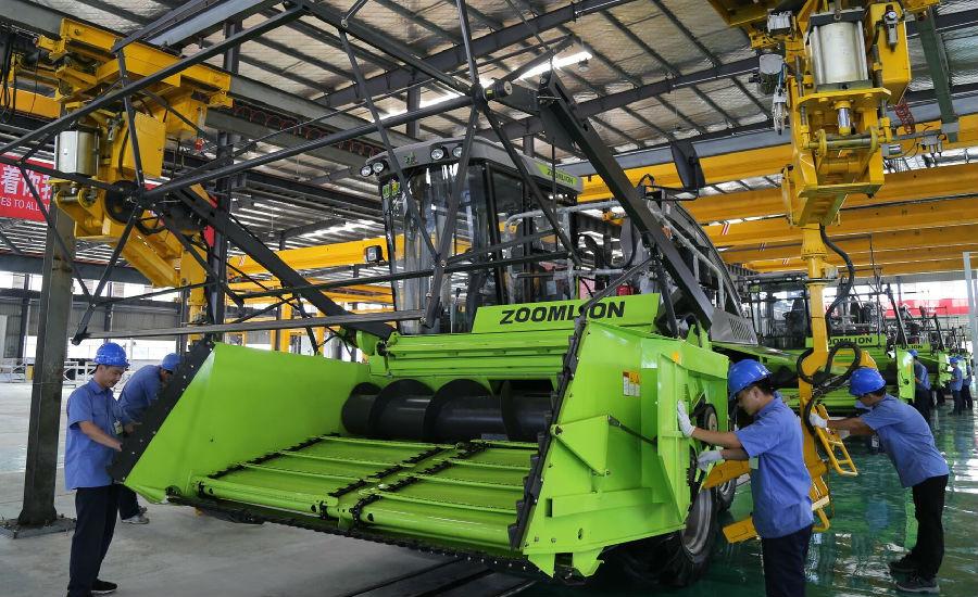 中聯(lián)重科廠房內(nèi)農(nóng)機(jī)安裝熱火朝天(供圖:中聯(lián)重科)