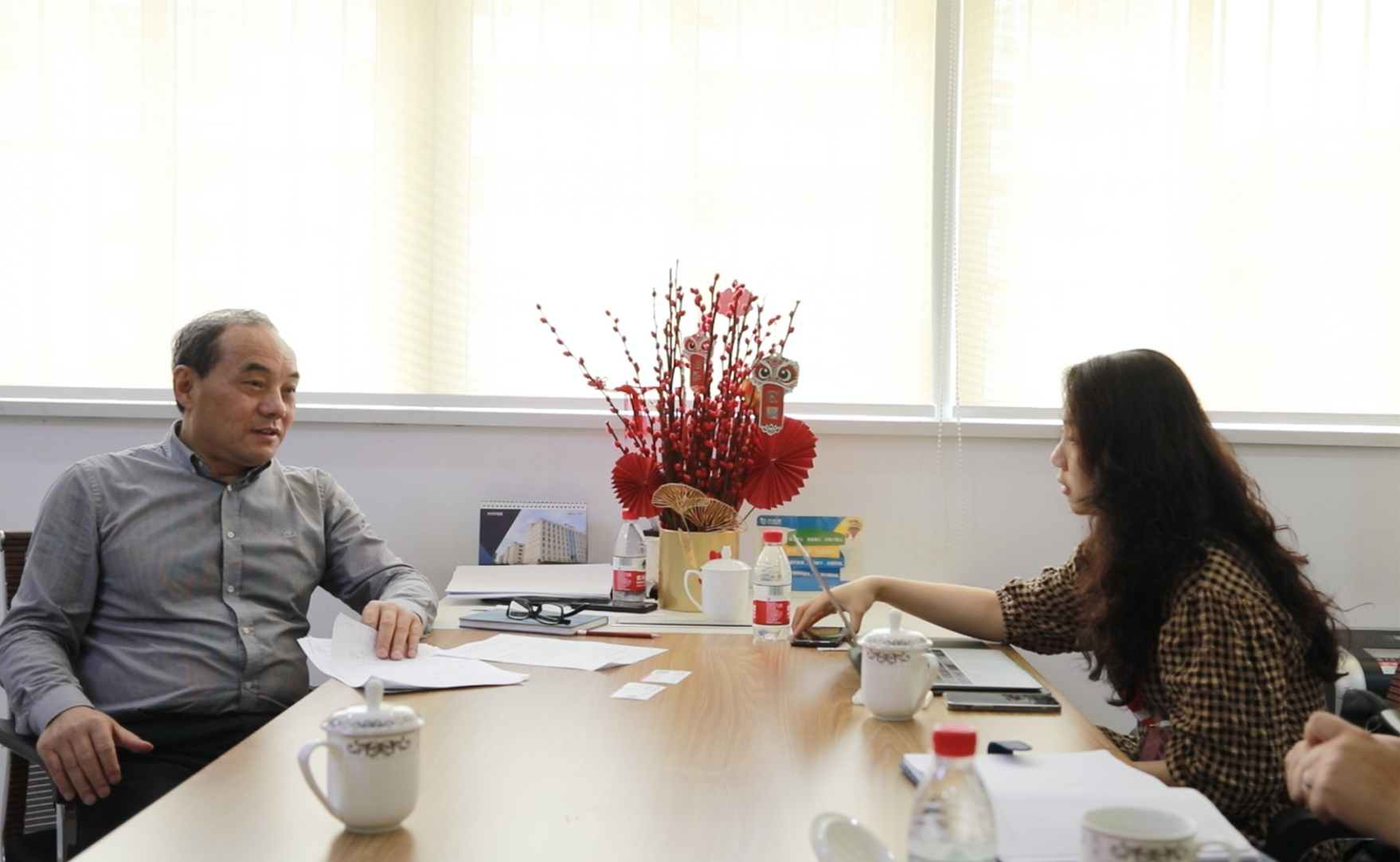歐陸通董事長(zhǎng)王合球(左)正在接受證券日?qǐng)?bào)記者專訪,供圖/公司