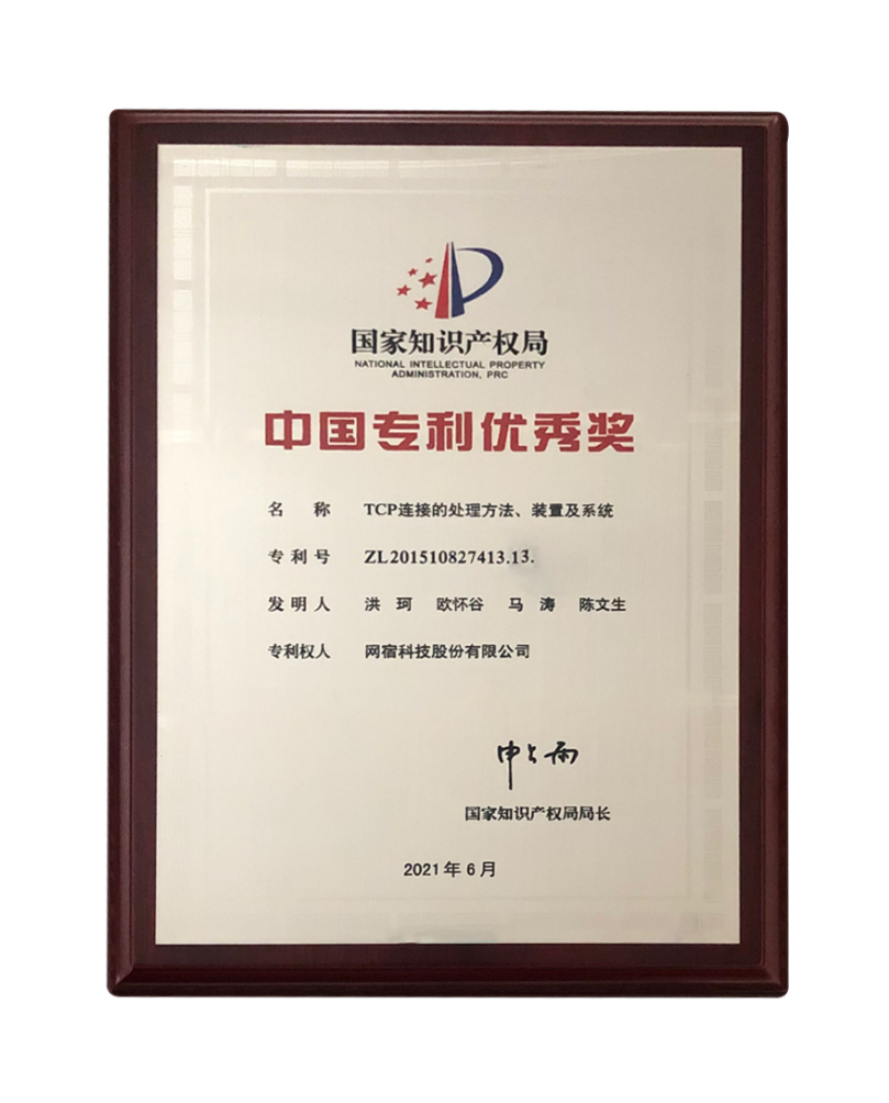 圖片說明:網(wǎng)宿科技獲“中國專利優(yōu)秀獎”