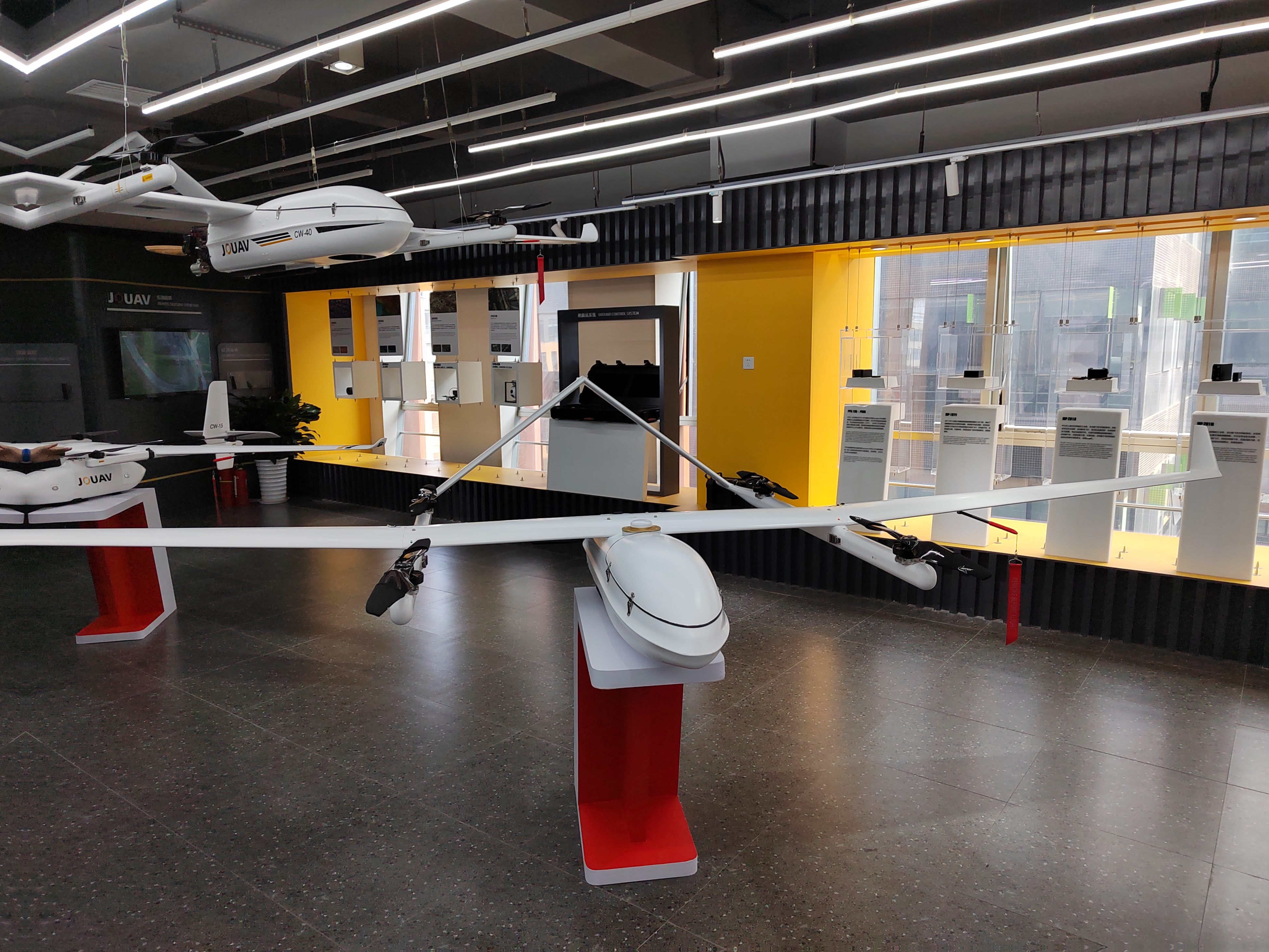 (圖為縱橫股份公司大廳展出的無人機(jī)產(chǎn)品,拍攝:舒婭疆)