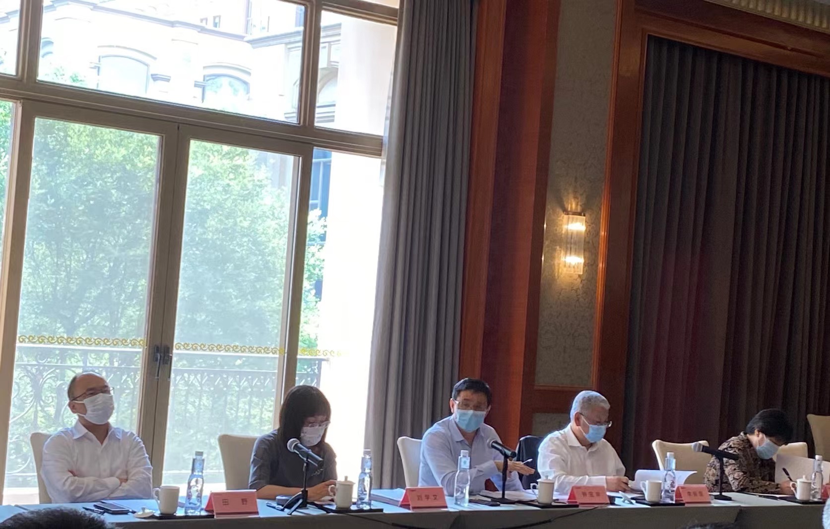 鐘寶申(左三)、李振國(guó)(右二)和股東交流